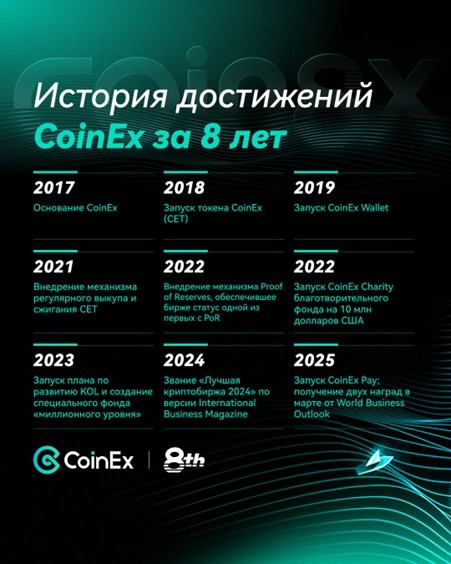 В течение 8 лет пользователи были частью путешествия CoinEx, и впереди ещё много общих достижений.