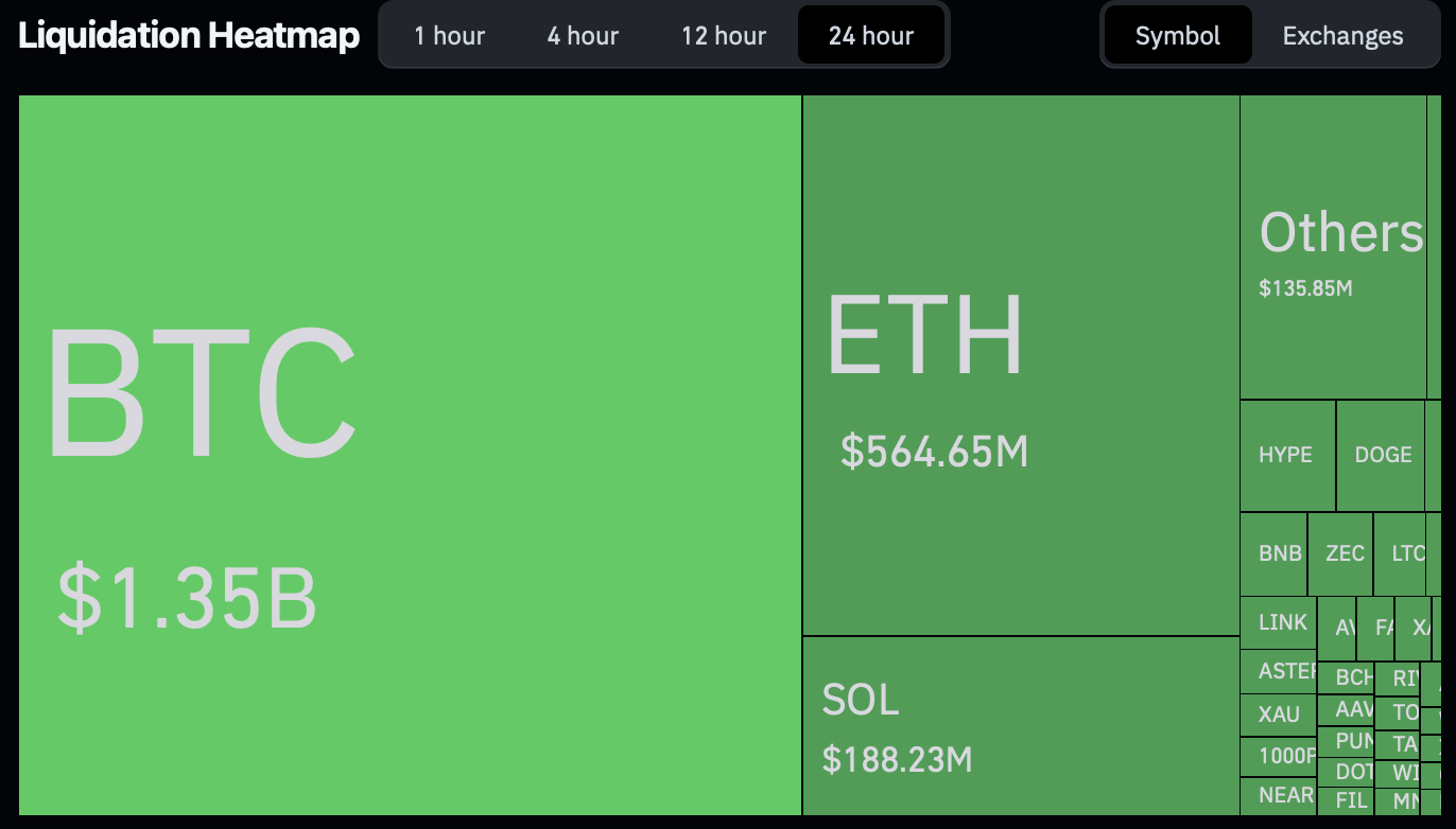 Карта ликвидаций за последние 24 часа. Источник: CoinGlass