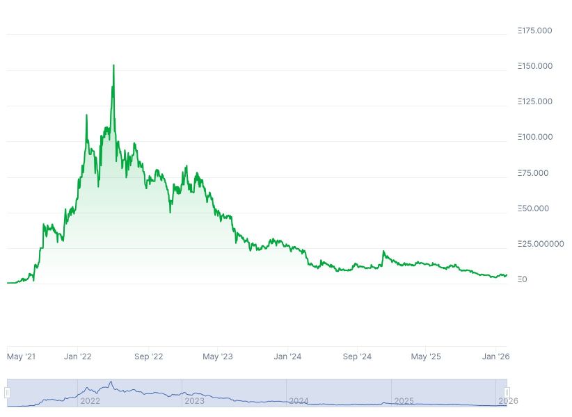По данным Happy Coin News, Бибер вложил деньги в Bored Ape Yacht Club за три месяца до того, как популярность этой серии NFT достигла своего пика. В апреле 2022-го минимальная цена токена BAYC составляла 146 ETH, но стоимость не удержалась на набранной высоте и спикировала до 6,1 ETH на сумму $12,660.