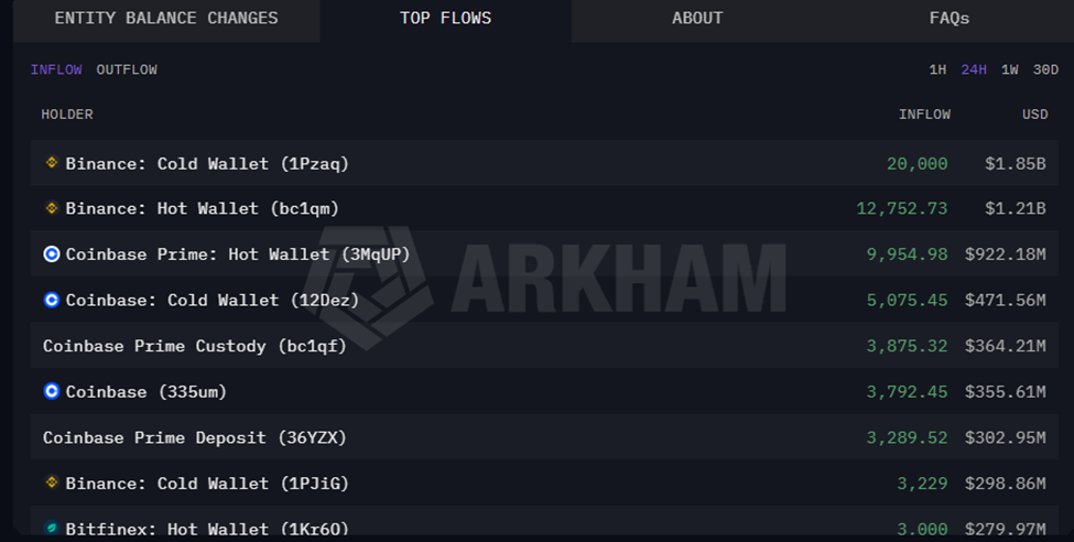 Данные Arkham указывают на концентрацию активности на крупных биржах, которые часто служат основным каналом для институциональных покупок.