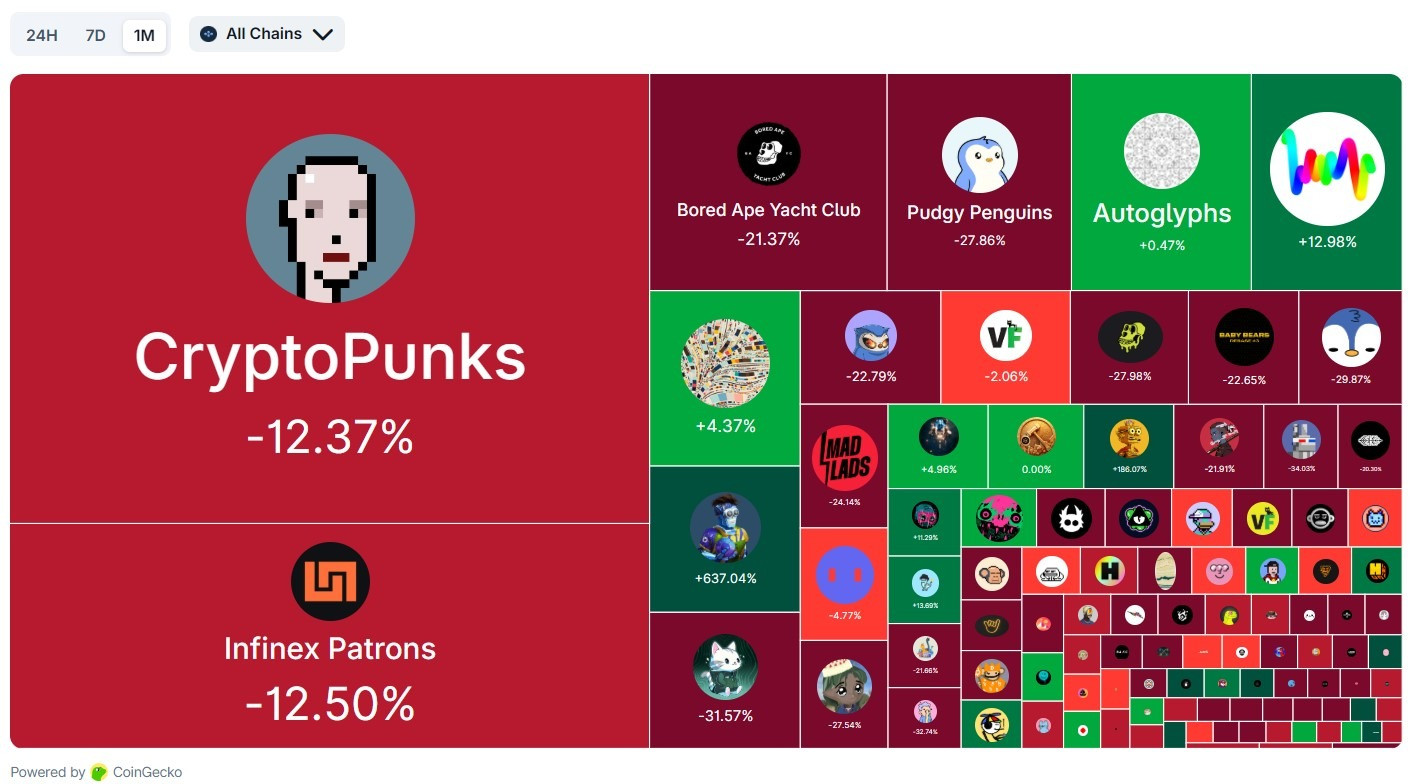 Тепловая карта NFT за предыдущие 30 дней. Источник: CoinGecko.