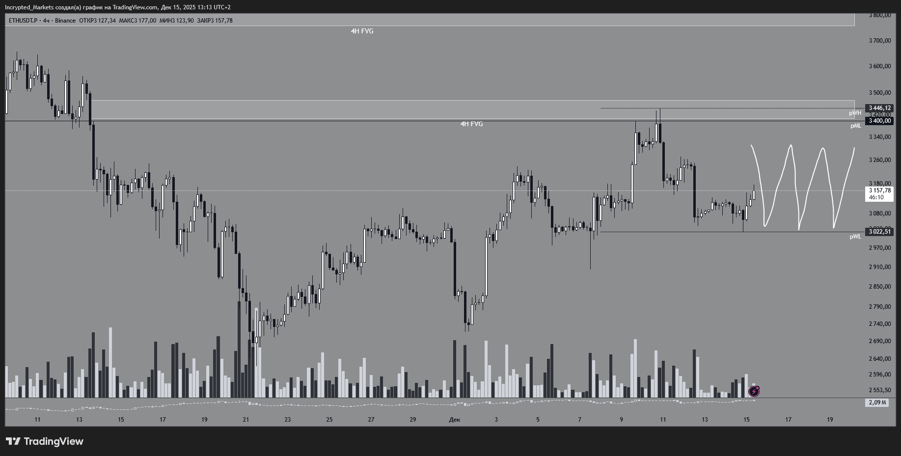 Рынок крутится между $3022 и $3200-$3260, делает девиации, собирает стоп-лоссы и не дает тренду. Тактика проста: работать от границ, середину диапазона пропускать.